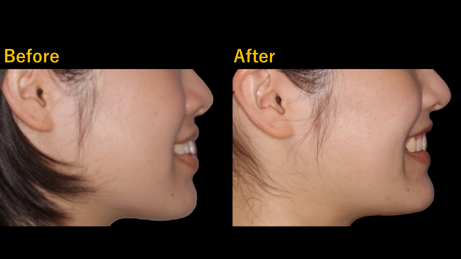 前歯の突出感が改善し、歯列全体のバランスが整いました。また、それにより、咬合が安定しています。